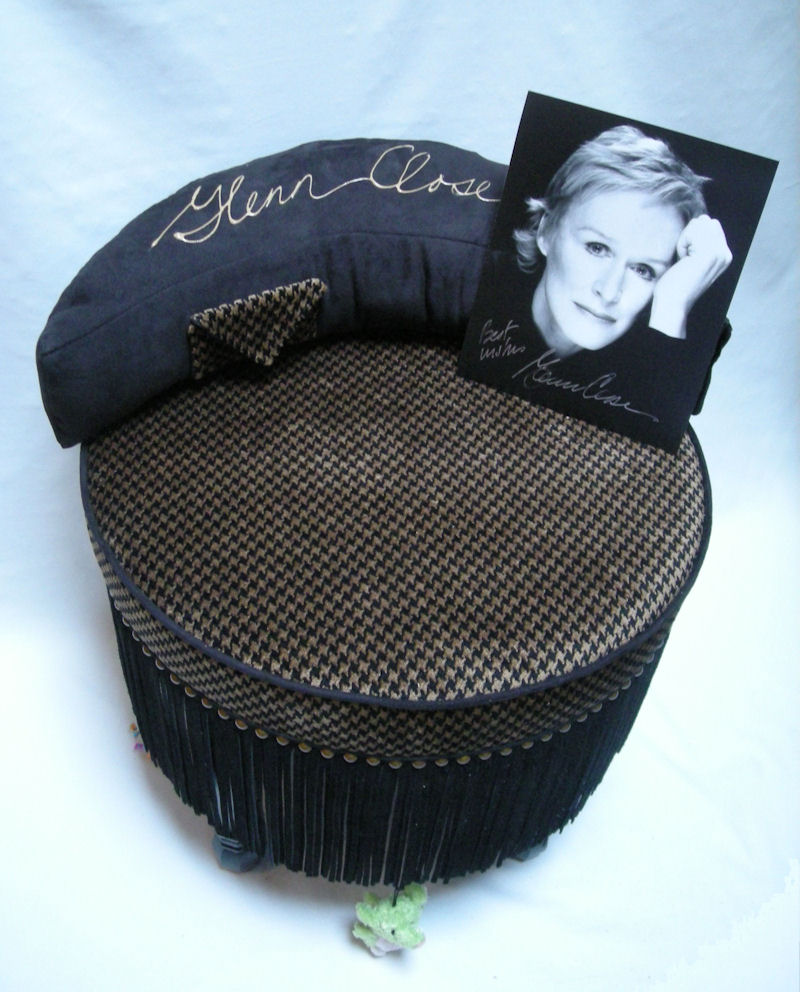 I am so pleased to be able to share some exciting news! Actress Glenn Close very generously autographed one of Fabulous Feline Furniture's Sublime Settees, which was live auctioned at the Faithful Friends' annual "Barkitecture" fundraiser this year.