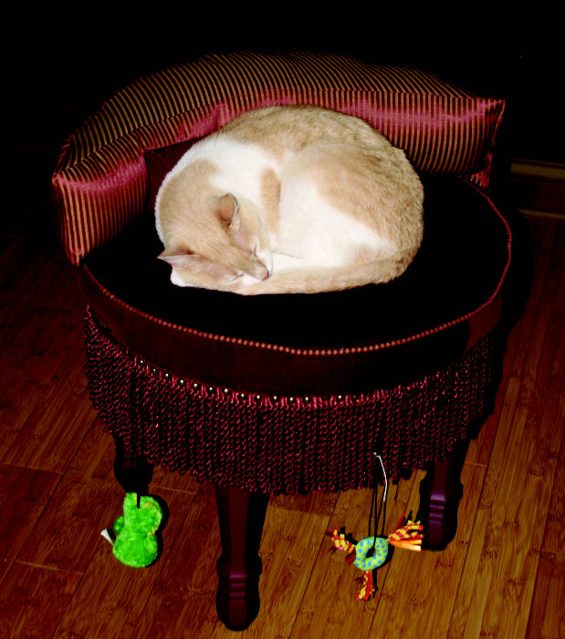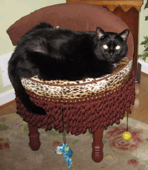 "..Hello, I am on the Board at Faithful Friends & I bought your lovely Sublime Settee for my kitties. I just wanted you to know how much I love it. It is sitting in my foyer because I don’t get the chance to put it in my bedroom. You’ll see why when you take a look at the photo I am attaching (smile). It is currently being monopolized & I can only hope that he will share with my “girls” at some future date. Thank you again…it is beautiful & loved by us all! Warmly, Laine Pace/Faithful Friends Board Member .." |